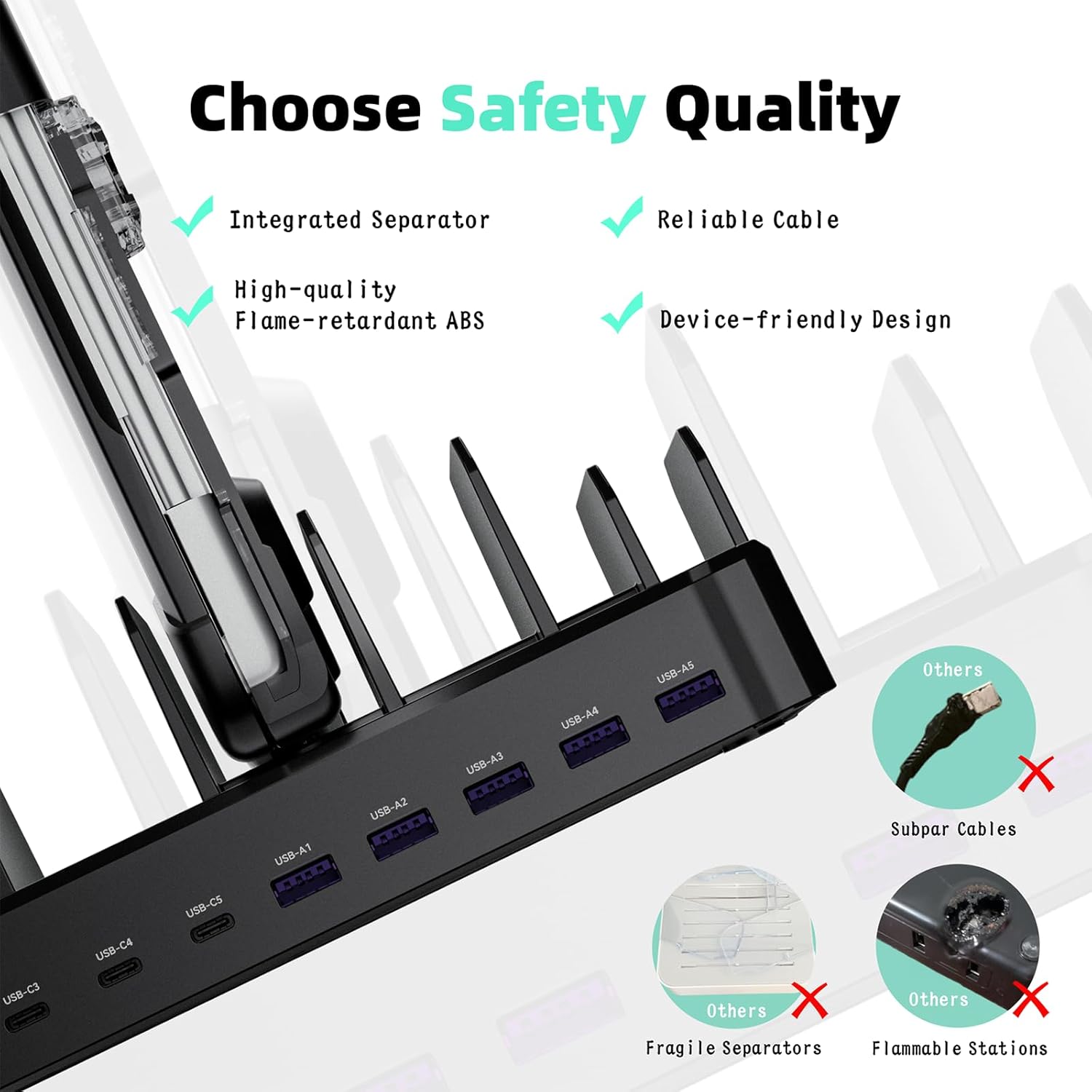 - 10-Port Charging Station Organizer: Unlike charging stations with only USB-A ports, our…