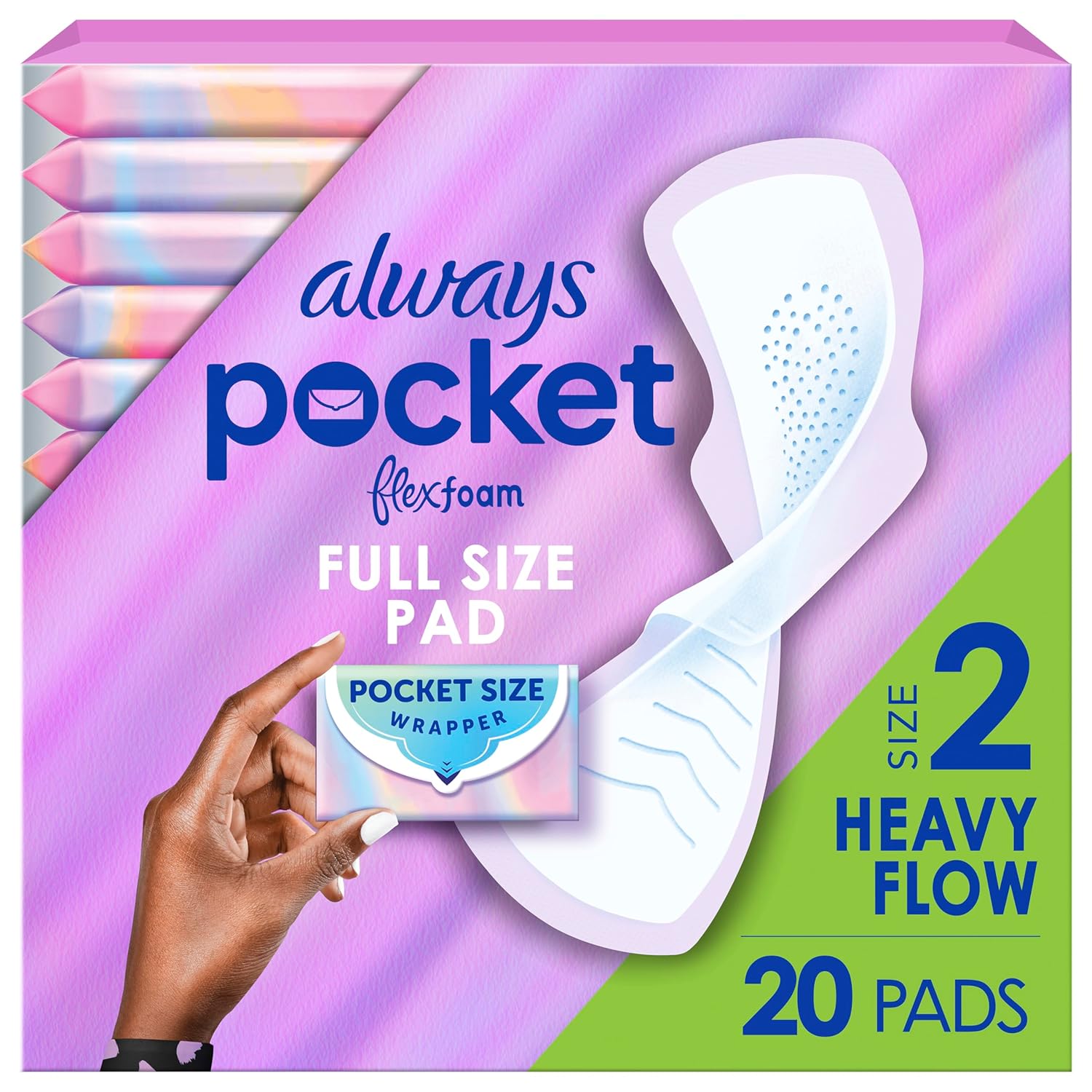 Always Pocket Flexfoam Pads, Size 2, Heavy, with Wings, 20 Count