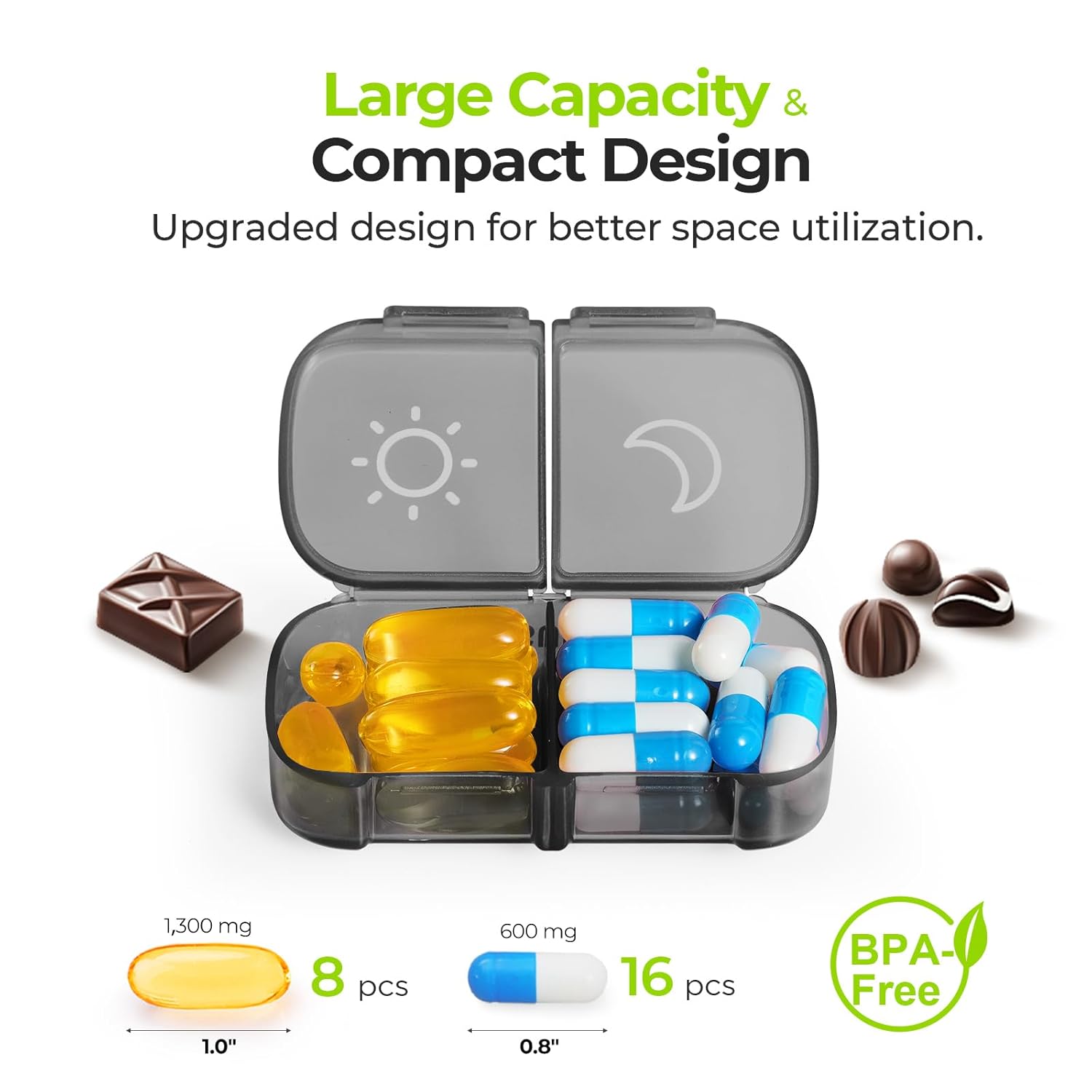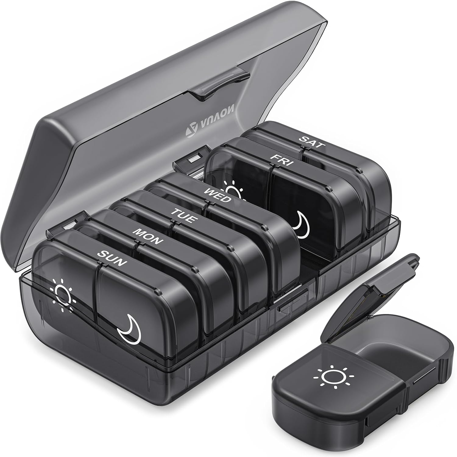 AUVON XL Weekly Pill Organizer 2 Times a Day, AM PM Pill Case with One-Side Large Opening for Easy to Use, Pill Box 7 Day Travel Medication Organizer for Medications, Vitamins,…