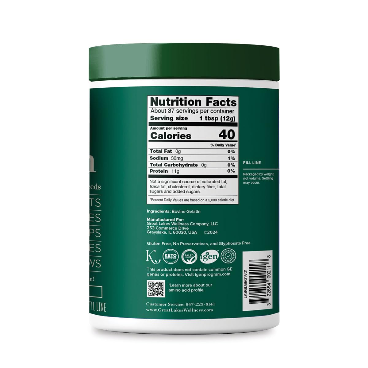 Great Lakes Wellness Beef Gelatin Powder for Culinary Needs – Perfect for Gummies, Marshmallows, Desserts and more – Unflavored – Grass-Fed, Kosher, Keto, Non-GMO 16 oz