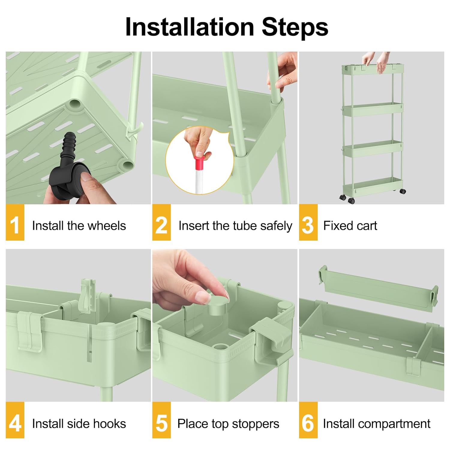 SPACELEAD Slim Storage Cart 4 Tier,Bathroom Organizer Rolling Utility,Mobile Shelving Unit Slide Out for Office, Kitchen, Laundry Room & Narrow Places,Green