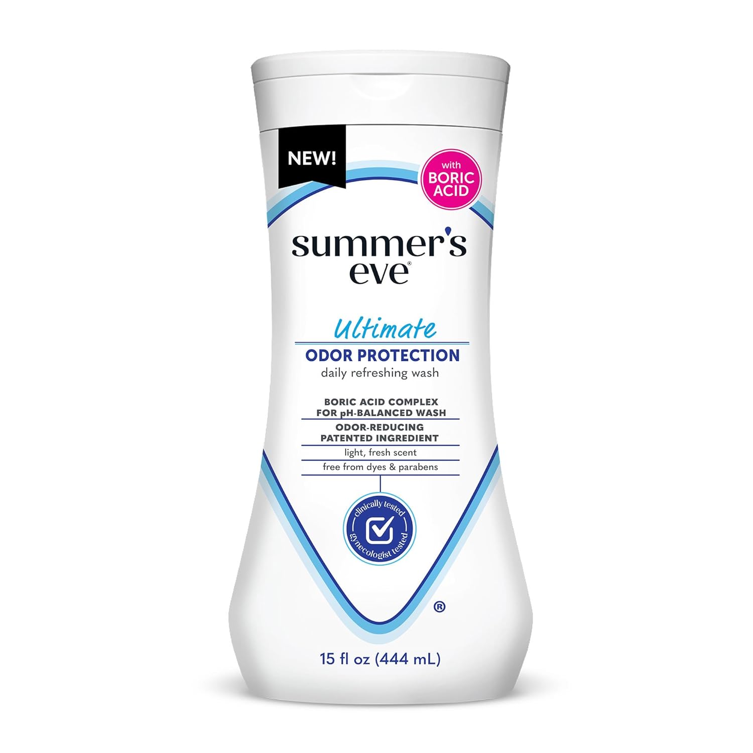 Summer’s Eve Ultimate Odor Protection Daily Feminine Wash, pH-Balanced Formula Body Wash for Women with Boric Acid Helps Control Vaginal Odor, 15 Fl Oz